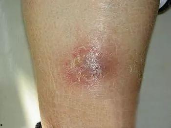 3. 凹陷性溃疡:皮肤表面出现凹陷性溃疡,可能伴有渗出物;